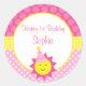 Um belo e cor-de-rosa e amarelo... pequeno raio de sol... tinha um adesivo de primeiro aniversário. Perfeito para cupcakes ou adesivos para sacos de favorecidos. Menina e doce para sua pequena senhorita luz do sol!