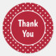 Adesivo Redondo Bolinhas Vermelha e Branca Obrigado