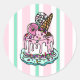 Adesivo Redondo Bolo Branca de Aniversário Rosa