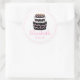 "Parabéns" escrito em círculo com um bolo de aniversário preto, branco e rosa. Personalizado com seu nome e data de nascimento. Adição perfeita à sua "Doce Festa de aniversário dos Dezesseis" - adicione este adesivo a balões, convites, placas de papel, copos e guardanapos! Para ver os itens correspondentes, visite minha loja "The Hungarican Princess" em www.zazzle.com/hungaricanprincess*.