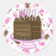 Adesivo Redondo Bolo de Chocolate Rosa e Castanho Aniversário