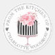 Delicioso bolo floral listrado francês com "da cozinha de", etiquetas redondas para produtos de panificação, com tipografia aberta decorativa clássica. Basta adicionar o seu nome. Um estilo atraente para os seus produtos de panificação. Você pode usar a ferramenta de design simples para alterar o estilo e a cor das fontes.