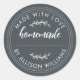 rótulo de conserva de geléia ou produtos assados caseiros rústicos, modernos e simples com o texto caseiro, feito com amor e seu nome em caligrafia manuscrita estilosa branca e tipografia em um fundo preto. Basta adicionar seu nome ao rótulo. Escreva os nomes dos produtos nos adesivos quando seus produtos estiverem prontos. Exclusivamente projetado para você pelo Happy Dolphin Studio!