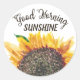 Vinheta sela de envelope com um girassol amarelo e castanho lindo em branco com texto de caligrafia fofo, "Bom dia, sol." Entre em contato conosco para obter ajuda com a personalização ou para solicitar produtos correspondentes.