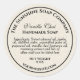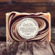 Um rótulo para produtos de cuidados com o corpo e banho com fundo em estilo de linho bege e texto preto.