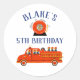 Apresentando a ilustração original de Popobell de um motor de incêndio clássico vermelho e um alarme de incêndio.