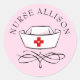 Adesivo Redondo Boné de Enfermeiro Rosa Personalizado