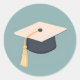 O adesivo apresenta uma design minimalista de um boné de formatura. O boné é representado por linhas limpas e formas básicas, capturando sua silhueta icônica. Esta representação simples, mas reconhecível, simboliza a realização acadêmica e a graduação. É um adesivo versátil que pode ser usado para comemorar realizações ou decorar itens relacionados a festas de graduação.
