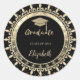 Boné de formatura brilhante, moldura de confete e círculo dourado com o seu nome.
