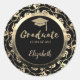 Boné de formatura brilhante, flores e círculo dourado com seu nome.