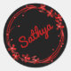 Adesivo Redondo Bonita flor vermelha monograma personalizado Nome