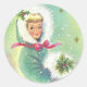Adesivo Redondo Bonita Retro de Natal Rapariga de inverno