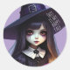 Adesivo Redondo Bonitinho, Bruxa Roxa Aniversário, Tema Gótico