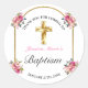 Adesivo Redondo Bonito Batismo Dourado Floral da Cruz Obrigado