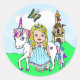 Adesivo Redondo Bonito Blonde Princess e Unicorn Castle