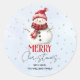Adesivo Redondo Bonito boneco de neve e Natal