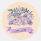 Adesivo Redondo Bonito Coelhinho Roxo Florais Felz pascoa Napkins