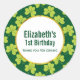Adesivo Redondo Bonito Padrão Verde De Vestido Aniversário Obrigad