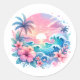 Adesivo Redondo Bonito rosa e arte costeira azul