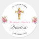 Adesivo Redondo Bonito Rosa Floral Oro Cruz Bautismo Gracias