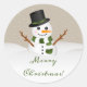 Adesivo Redondo Bonito Snowman Sorridente Com Feliz Texto De Natal