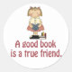 Adesivo Redondo Bonito Um Bom Livro é uma camiseta de verdadeiro a