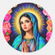 Adesivo Redondo Bonito Virgem Maria com Mãos e Rosas de Oração