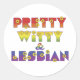 Você é bonito, espirituosa e lésbica? Mostre seu orgulho com este adesivo caprichoso! O texto diz: "Bonito bruxa e lésbica". A inscrição tem uma mistura de cores do Sinalizador Arco-Íris. Você pode mudar a cor de fundo, se quiser. Quer este ou um design semelhante em outro item? Navegue na minha Galeria de Errantes.