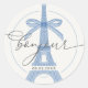 Adesivo Redondo Bonjour Bébé Blue Paris Eiffel Chá de fraldas