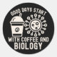 Adesivo Redondo Bons dias Comecem com Café e Biologia