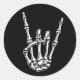 Caneta e desenho de tinta de uma mão esquelética no gesto de saudação de rock pesado. Gráfico B/W, em t-shirts, capuzes, botões, autocolantes, cartões, presentes.