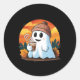 Adesivo Redondo Boo Ghost Bebendo Café Halloween Mulher