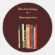 Estes autocolantes apresentam um cheio de prateleira de livros coloridos sobre fundo castanho profundo. Excelente para identificar os livros em sua própria coleção, eles também farão um presente maravilhoso para os amantes do livro! Personalize com seu nome pessoal.