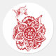 Adesivo Redondo Borboleta com Flor(Henna)(Vermelho)