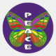 Uma borboleta colorida arco-íris tem a palavra "Paz" no meio para mostrar quão frágil ela é. Compartilhe e mostre-o para construir forças em números para criar um mundo sem guerra.