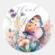 Romântica laranja de verão e flores violetas com obrigado de borboleta você ronda adesivos com nome e texto personalizáveis para presentes elegantes e quentes!