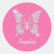 Adesivo Redondo Borboleta Diamante Branca, Nome do Script, Rosa