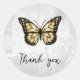 Mande envelopes para os cartões de agradecimento com esta Brilhante borboleta Dourada Obrigado Sticker. O design de adesivo apresenta uma borboleta brilhante adornada com uma vinha de folhagem contra fundo de cinza. Itens de papelaria correspondentes adicionais disponíveis com este design também. Se precisar de assistência com personalização, entre em contato comigo diretamente.