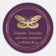 Autocolante moderno e elegante com borboleta ouro numa moldura circular com rolagem decorativa por baixo num fundo roxo escuro. A cor de fundo pode ser alterada