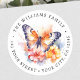 Adesivo Redondo Borboleta e flores pintando endereço de retorno