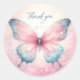 Adesivo Redondo Borboleta Glitter de Pastel Rosa - Obrigado -