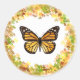 Adesivo Redondo Borboleta-monarca no quadro das folhas