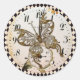 Design de arte digital redonda com borda de harlequin, face de relógio antiga e borboleta de metal com estilo Steampunk
