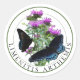 Adesivo Redondo Borboletas roxas vermelhas em Bee Balm