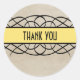 Elegante e elegante Borda Flourish Obrigado Stickers apresentando uma imagem de fundo vintage e uma espiral de rico e uma borda amarela limão-risca. Este na moda é a escolha perfeita para um casamento inspirado no deco vintage. Fácil de personalizar, basta adicionar o texto personalizado de sua escolha no campo de texto fornecido. Clique em "Personalizar" para encontrar mais opções de personalização.