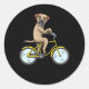 Adesivo Redondo Borda - Cão Terrier Com Ciclo De Bicicleta