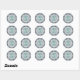 O design de adesivo de feriado personalizado apresenta uma borda de flocos de neve brancos com moldura redonda de prata / monograma de cinza. Personalize a letra verde esmeralda inicial e o script branco escrevendo para o seu sobrenome. O plano de fundo azul/cinza pode ser personalizado.