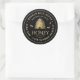 Este rótulo preto tem campos editáveis para cumprir os requisitos listados pelo Conselho Nacional de Mel nos EUA no momento em que este rótulo foi criado; a palavra mel, o nome da sua empresa, o nome pessoal, o endereço e o peso líquido do mel em gramas e onças devem ser incluídos se você vender o seu mel. Verifique essas informações antes de solicitar o rótulo, caso tenha sido feita alguma alteração nos regulamentos. Inclui vintage skep com gradiente de ouro e borda dupla. Conversões de peso líquido de mel comum: 8 oz (227 g), 12 oz (340 g), 16 oz (454 g), 32 oz (907 g), 5 lb (2,27 kg).