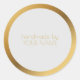 Um autocolante redondo elegante apresenta um centro branco limpo emoldurado por uma borda com efeito dourado ousado e texto personalizável "feito à mão por" para selar pacotes, envelopes e embalagens. Ideal para pedidos da Etsy e valorização do cliente, adiciona um toque final polido às embalagens, reforçando o nome e a identidade da marca. O texto pode ser totalmente personalizado. O visual metálico é um efeito dourado impresso.