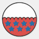 Adesivo Redondo Borda estriada branca e vermelha com estrelas azui